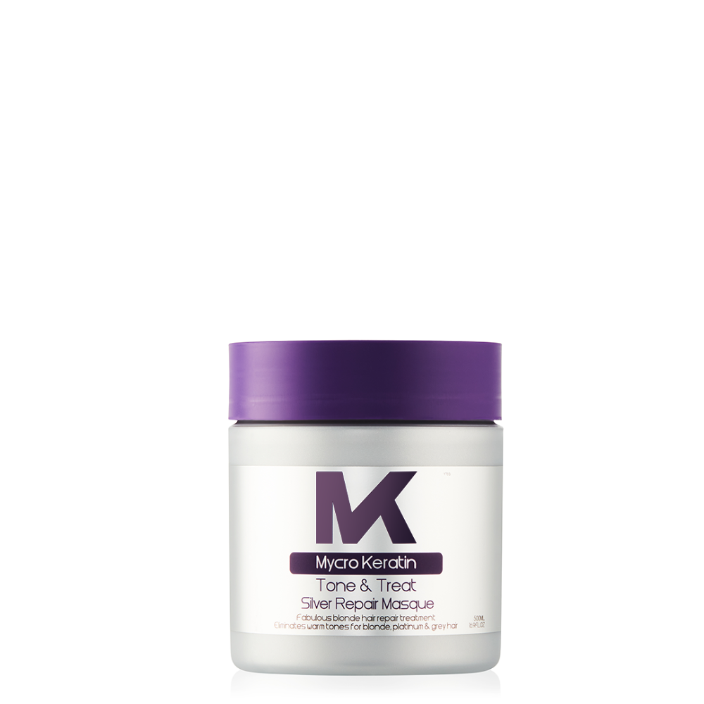 Tone & Treat Silver repair masque is the perfect solution for dry, brittle blonde/grey hair, intensively repairing your hair eliminating dullness and yellow tones while restoring youthfulness, elasticity and shine.