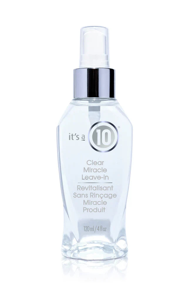 Introducing It’s a 10 Clear Miracle Leave-In – a powerful Vegan formula that’s enriched with natural alternatives like sugar beet extract, aloe vera, Ashwaganda, Amla extract, Reishi Mushroom, Biotin, and more to impart hair with nourishing vitamins, antioxidants, and minerals that restore shine, detangle, protect against thermal styling, reduce frizz and breakage, and enhance natural body and shine. The color-safe lightweight leave-in is designed for everyday use, so you’re left with hair that’s nothing except crystal- clear perfection.