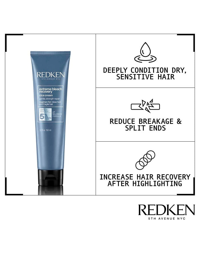 Extreme Bleach Recovery Cica Cream Leave-In Treatment is a strengthening, leave-in treatment for bleached, damaged hair. This repairing leave-in treatment deeply nourishes the hair from the inside out to increase the resilience and strength of the hair in between lightening and highlighting services.