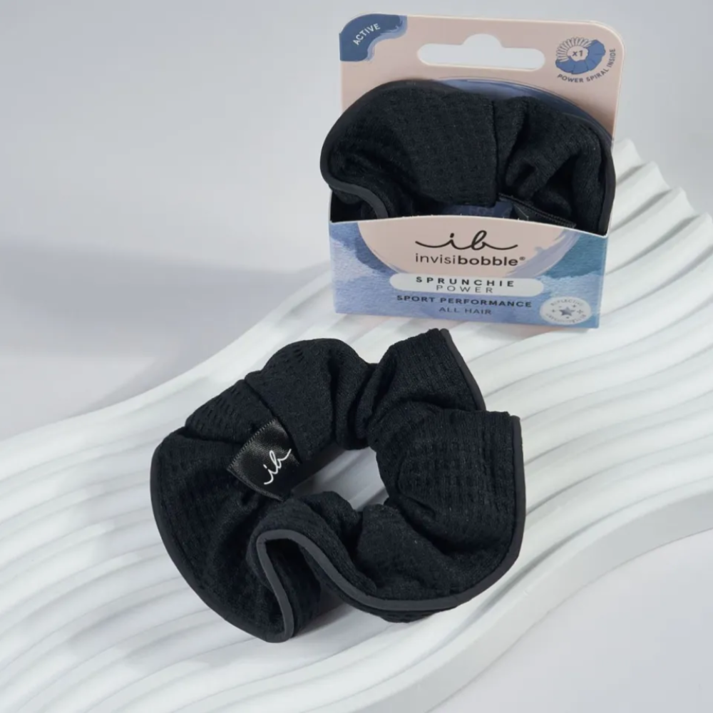 invisibobble SPRUNCHIE POWER, the sports icon. With HAIRLOVETECH, Having a POWER spiral inside, the SPRUNCHIE POWER ensures maximum hold while being gentle to the hair. For all hair types and an active lifestyle.