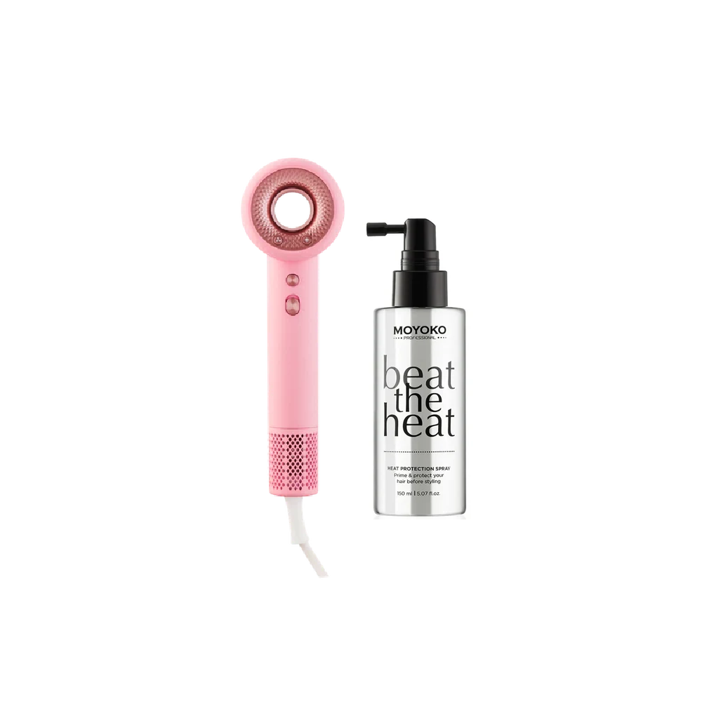 The Moyoko Aria E9 is a lightweight, high-speed hair dryer that delivers salon-level results up to 3× faster with zero heat damage. Powered by Smart HeatTech™ and a UNOSTROKE® motor, it smooths frizz, boosts shine and stays whisper-quiet.