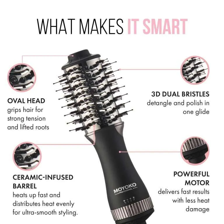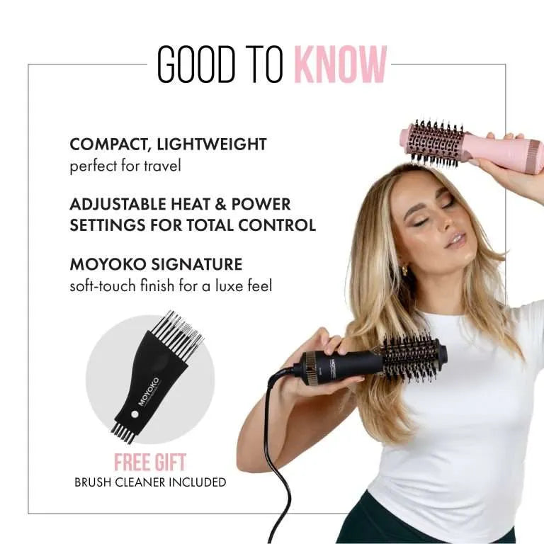 The Moyoko Mini Magnitude Blowbrush gives you salon-quality volume, shine and bounce in one easy step, wherever you go.