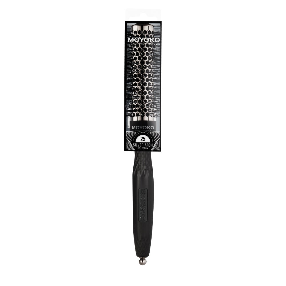 Get a salon-quality blowout with the Moyoko Silver Arch Collection. Not only does this brush accelerate styling, it creates volume and bounce, adding shine to the hair.