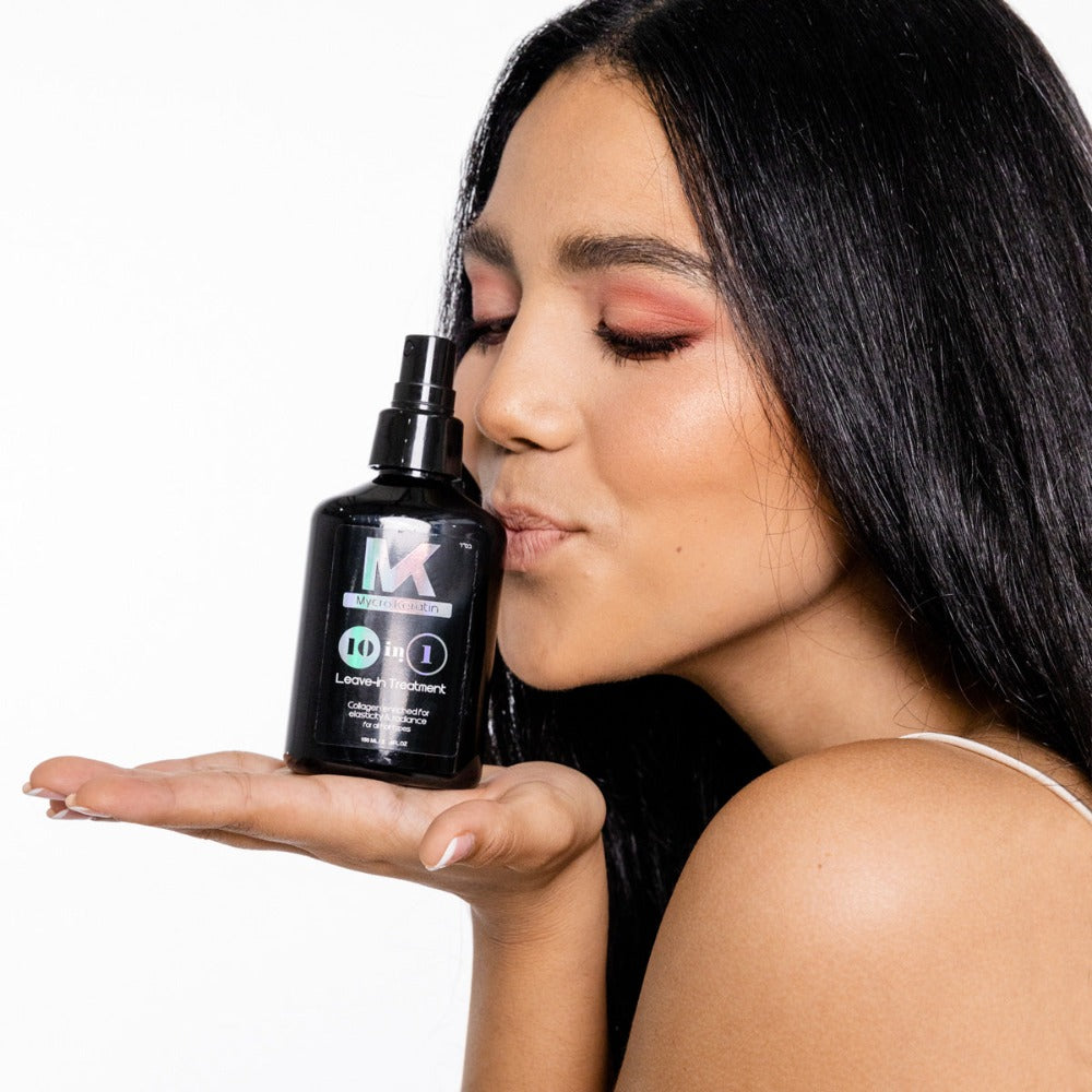 Keratin-enriched, and with anti-aging properties, the 10-in-1 Collagen Leave-In Treatment promotes elasticity and gorgeous gloss while illuminating color. This sublime leave-in treatment defrizzes, detangles, protects and conditions dry, coarse, or brittle hair. 150ml