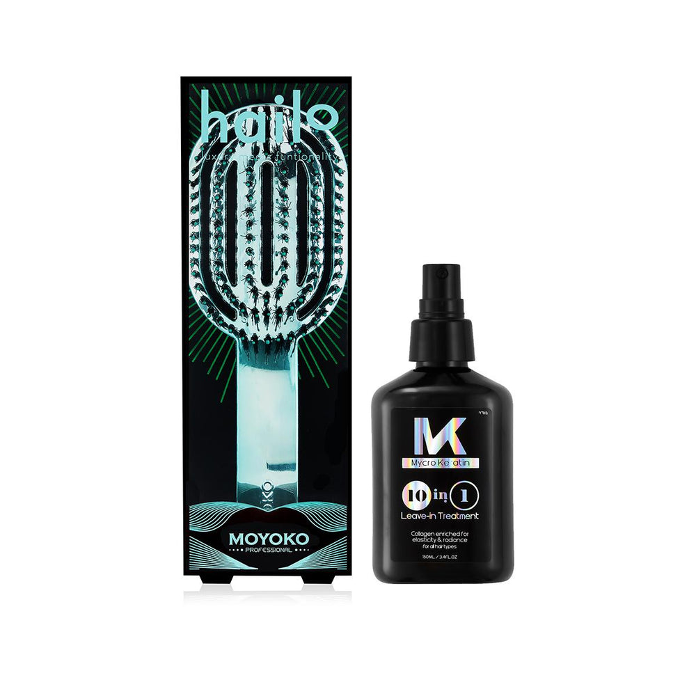 The Moyoko Hailo Detangling Brush is an innovative brush finished with a high-quality, luxurious UV coating that combines a dramatic look with optimal functionality. The Moyoko Hailo brush has an unique design that enhances control whilst detangling and smoothing your hair.